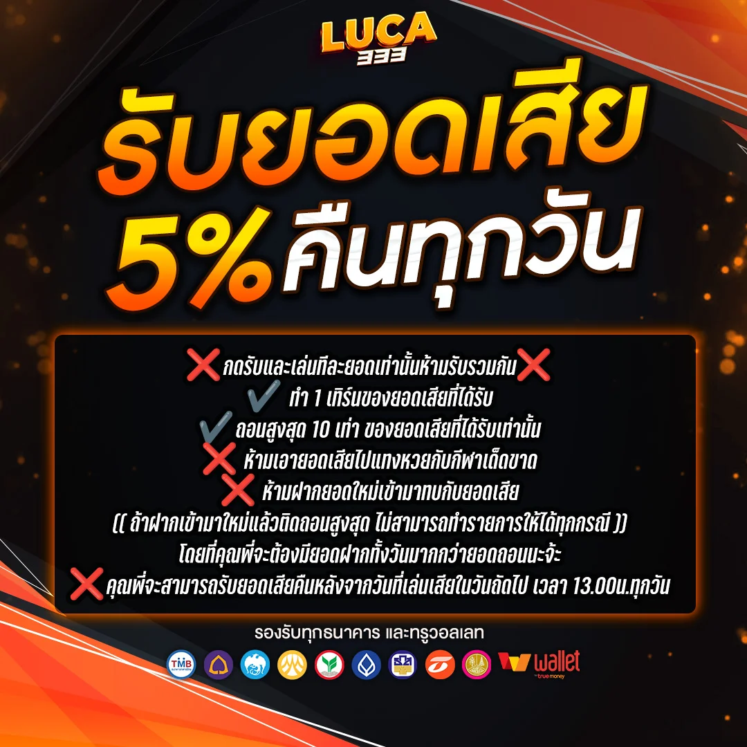 LUCA333 เว็บตรง เล่นแล้วได้เงินจริงแน่นอน เพราะเว็บนี้มีความน่าเชื่อถือสูงสุด การันตีจากผู้เล่นจริงที่ทำกำไรได้ชัวร์ ๆ ไม่ต้องกลัวโดนโกง ระบบโปร่งใส ฝาก-ถอนง่ายด้วยวอเลท สะดวกสุด ๆ และที่สำคัญคือโบนัสแตกบ่อยมาก อยากได้เงินง่าย ๆ แบบไม่ต้องรอนาน